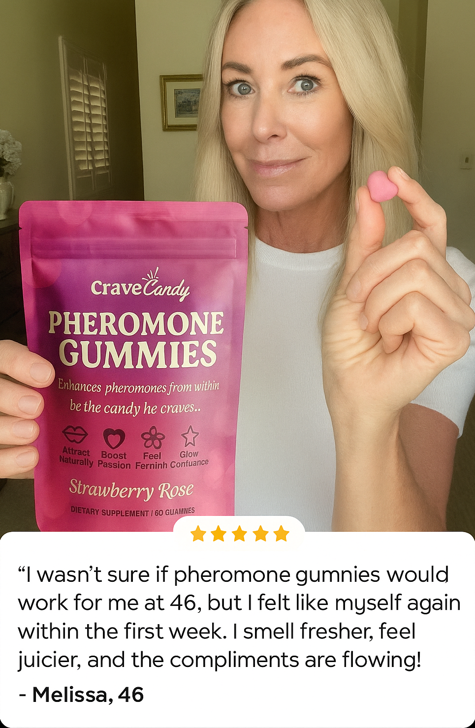 “After menopause I felt invisible—dry, dull, no spark. Ten days on Crave Candy and my husband kept leaning in asking if I’d changed perfume. Nope—it was me again.”